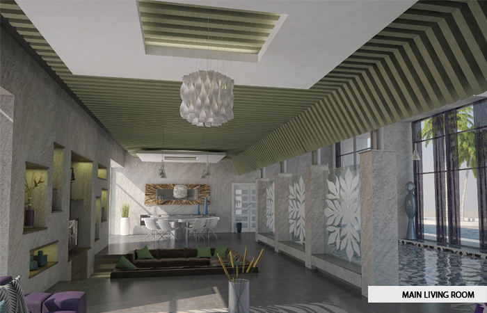 Scope of work: interior design, supply of: bricks, tiles and furniture, supervision of works