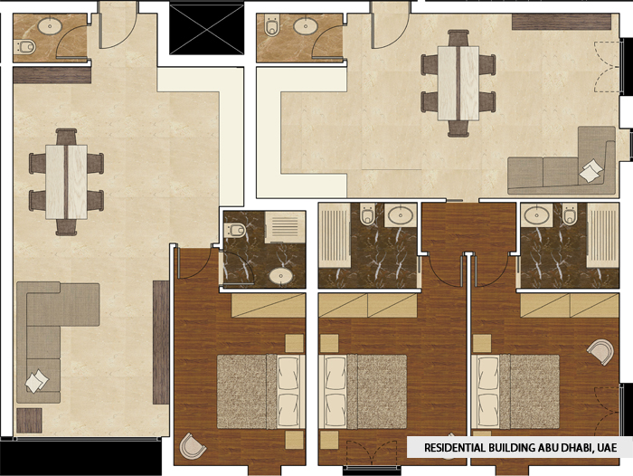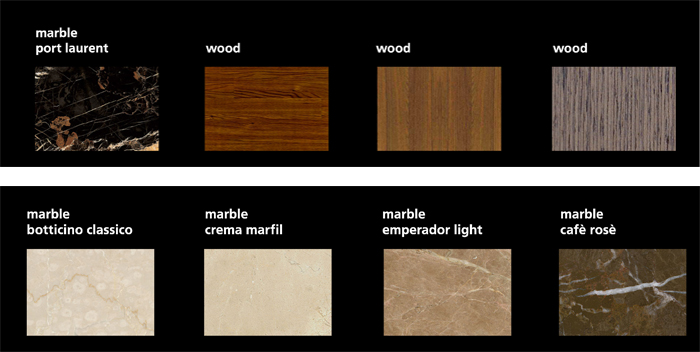 Scope of work: interior design, supply of finishing materials such as: tiles, marbles, bathrooms and furniture